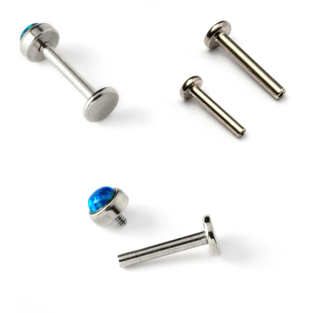 Es el tipo de joya más usado para perforaciones en las orejas y orofaciales. Esta barra tiene un disco plano unido a un extremo, lo que reduce el contacto con los dientes y las encías en los piercings de labios y son joyas muy cómodas y seguras para las fosas nasales, los lóbulos y cartílagos de las orejas. El calibre más usado es 16g ( 1.2 mm ).