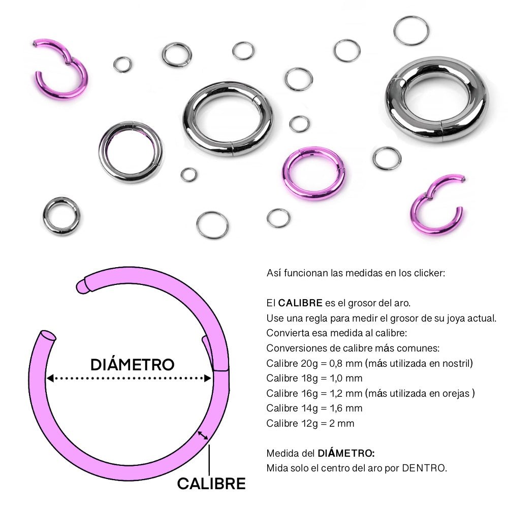Es un tipo de joyería que se caracteriza por tener un mecanismo de bisagra que permite abrir y cerrar el aro de forma sencilla y segura, sin necesidad de herramientas adicionales. Son populares para diversas áreas del cuerpo, como la nariz, oreja o ceja, y vienen en una variedad de estilos y colores. Se recomienda para perforaciones ya cicatrizadas o que al menos cumplan con un mínimo de 4 meses después de haberte perforado.