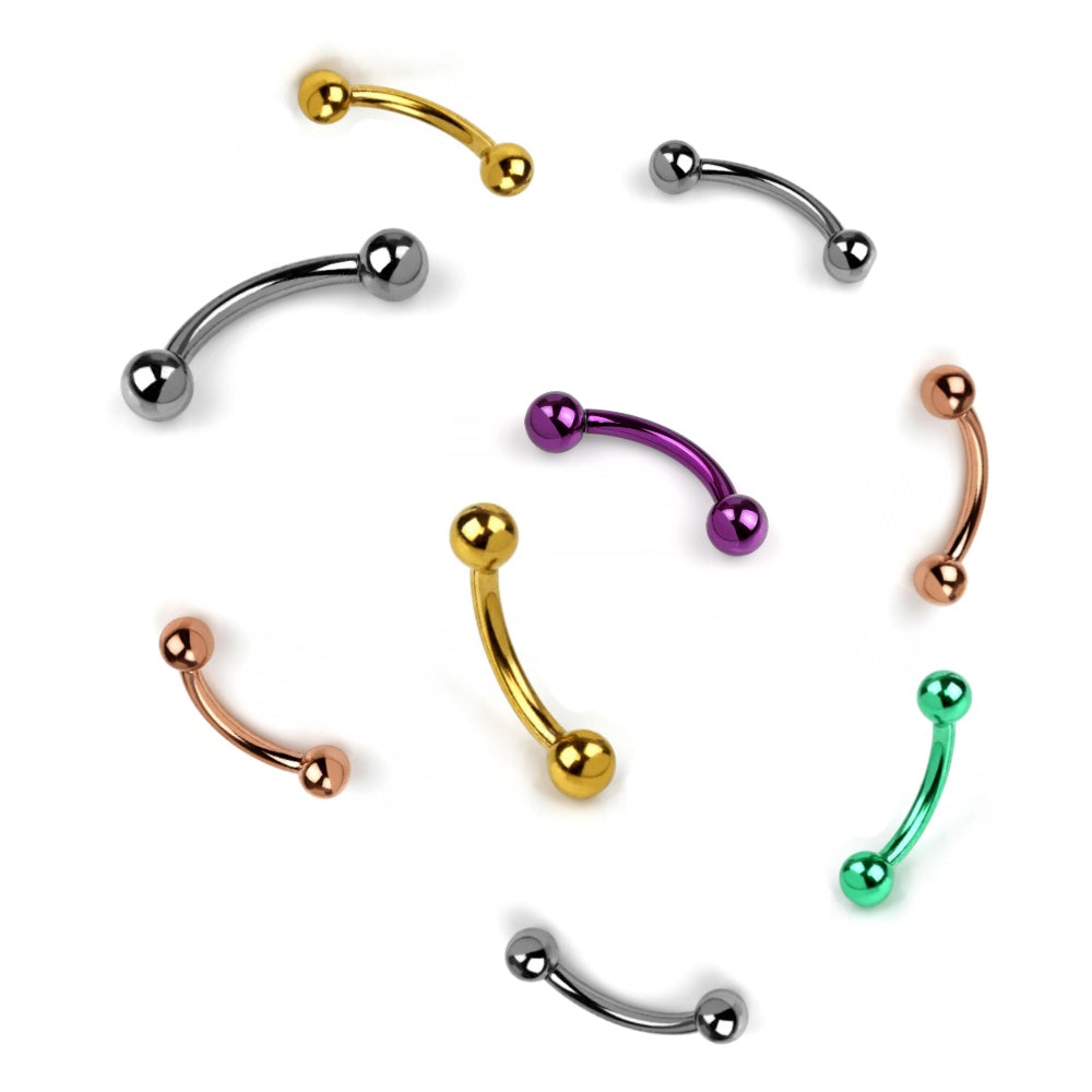 El termino curved barbell hace referencia a una barra con forma de aproximadamente un cuarto de círculo. Esta curva es suave y consistente. Este tipo de joyería es adecuada para perforaciones cómo el ombligo, la ceja o el Rook (oreja).