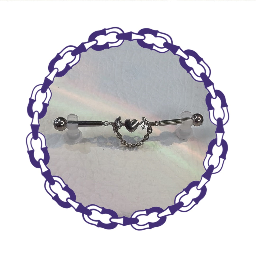 Industrial Corazón Alado con Cadena Colgante, ideal para perforaciones de Industrial ya cicatrizadas o Helix.
